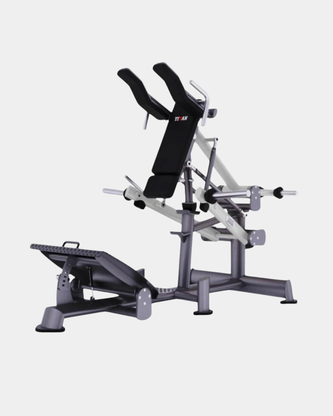 La Power Squat está diseñada para ofrecer un entrenamiento completo de piernas, enfocándose en el desarrollo de los cuádriceps, glúteos, isquiotibiales y erectores espinales. Su ingeniería avanzada proporciona una trayectoria natural y segura, permitiendo ejecutar sentadillas con máxima estabilidad, potencia y control.